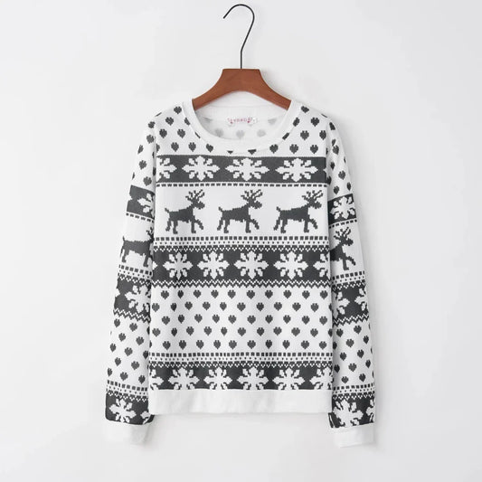 Winterse Oversized Gebreide Dames Kersttrui met Rendieren en Ronde Hals