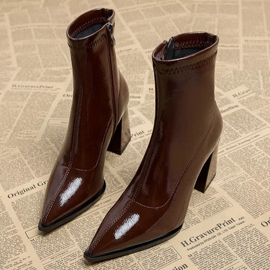Luxe Dames Enkellaarsjes met Puntige Neus en Blokhak