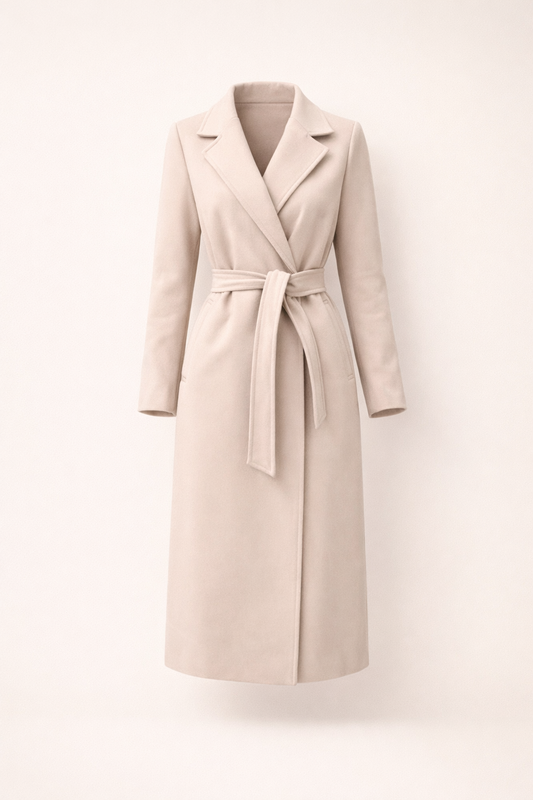 Warme Dames Lange Manteljas met Ceintuur en Reverskraag