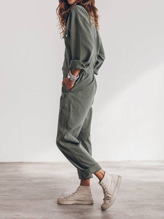 Trendy Dames Utility Jumpsuit met Lange Mouwen en Zakken