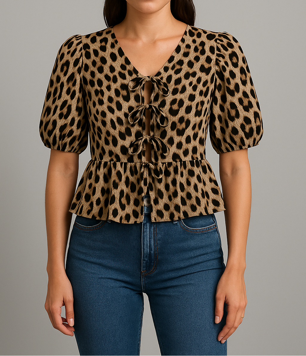 Allegra | Puff Sleeve Top with Bow Detail for Women