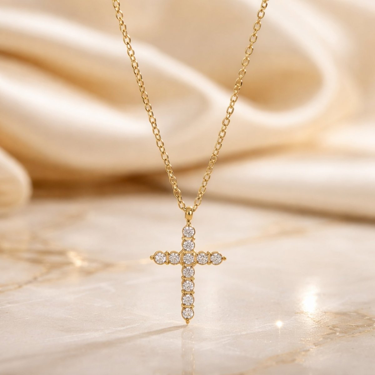 • Wzór: Zawieszka w kształcie krzyża z błyszczącymi detalami i wyrafinowanym wykończeniem dla luksusowego efektu