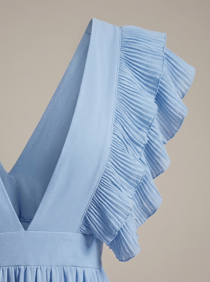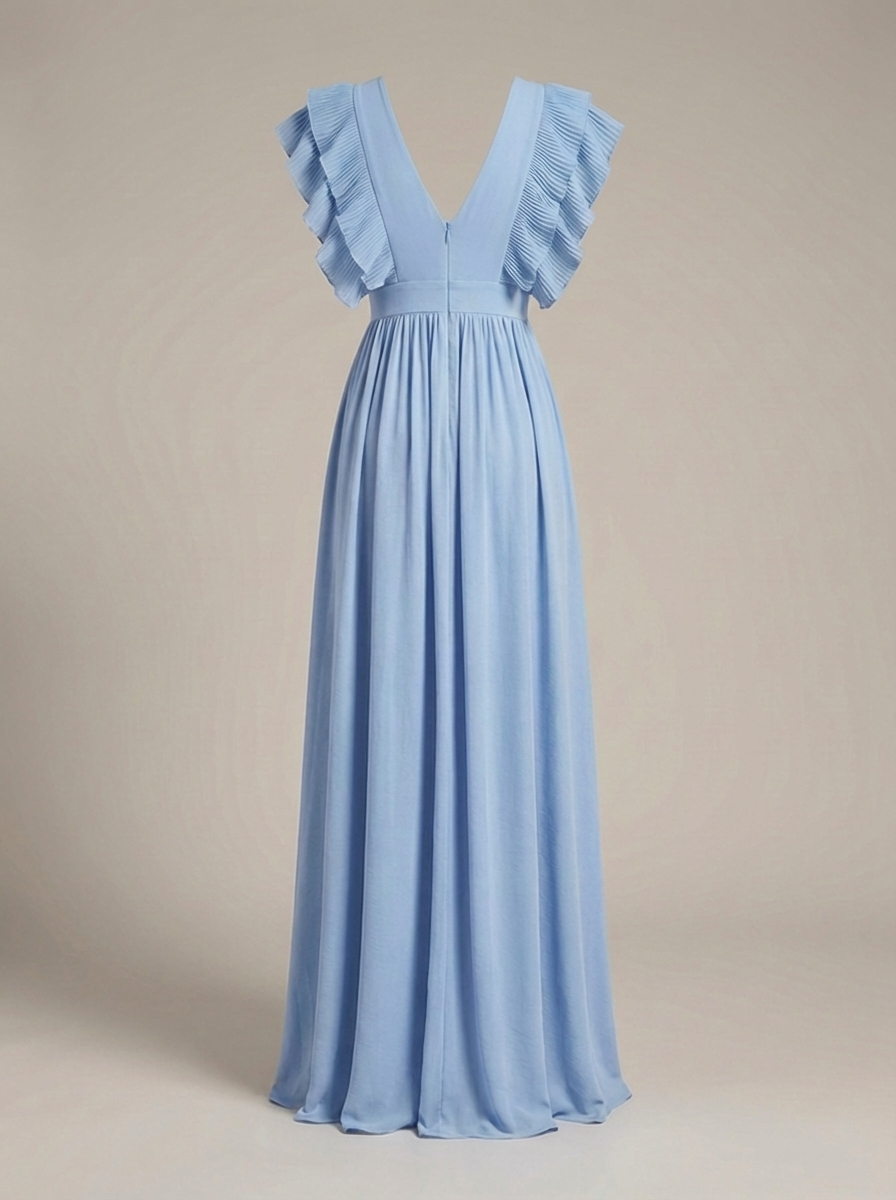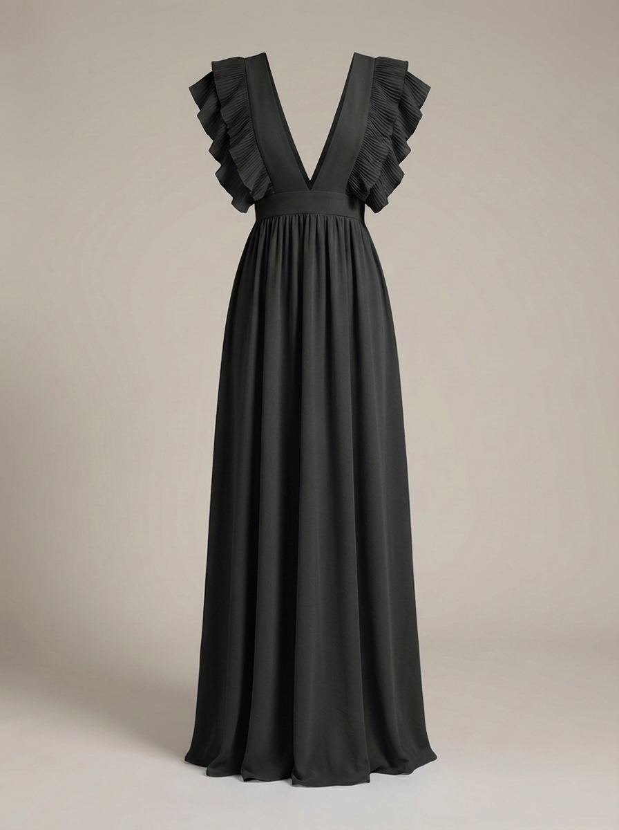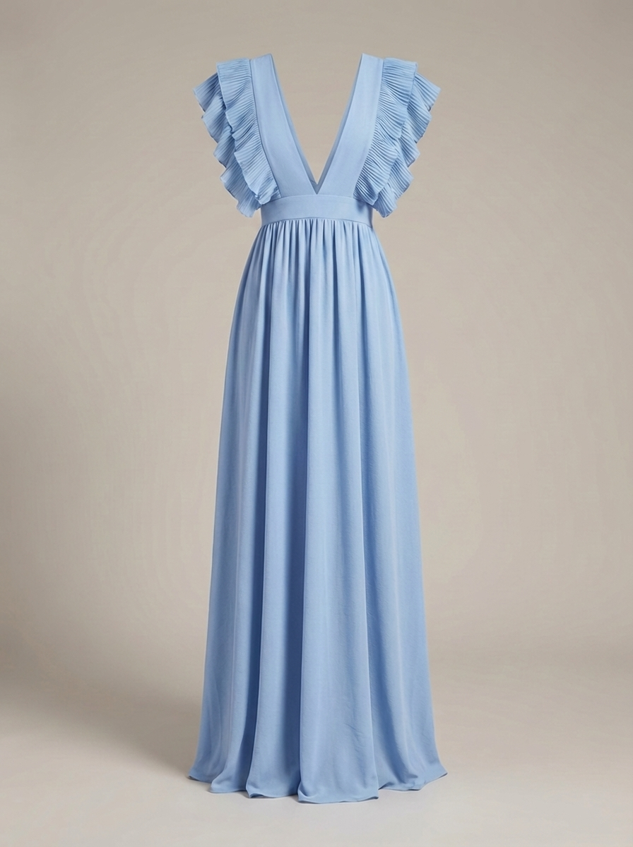 Zwiewna sukienka maxi dla kobiet z falbanami i głębokim dekoltem w serek