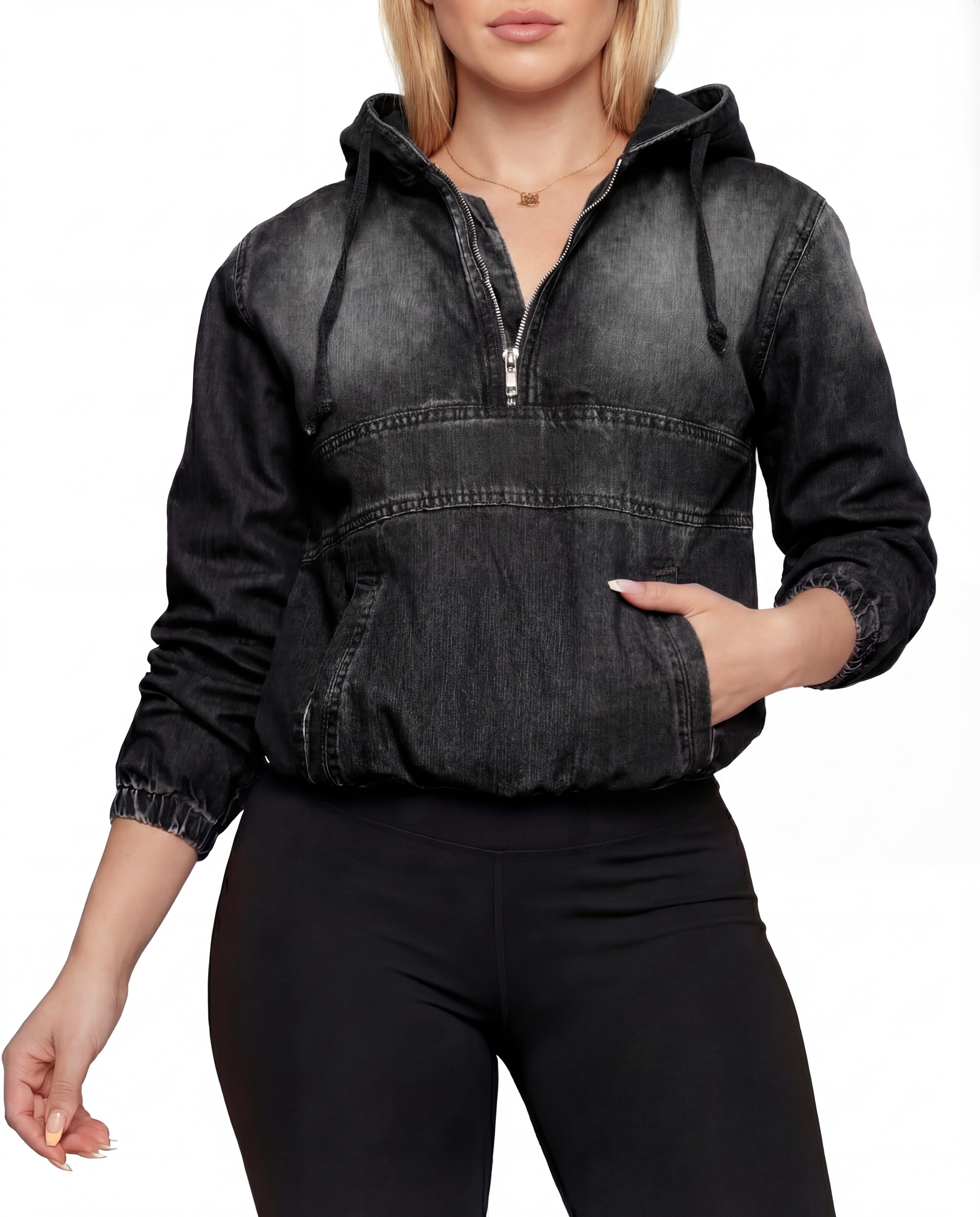 Casual Dames Denim Hoodie Met Rits En Capuchon