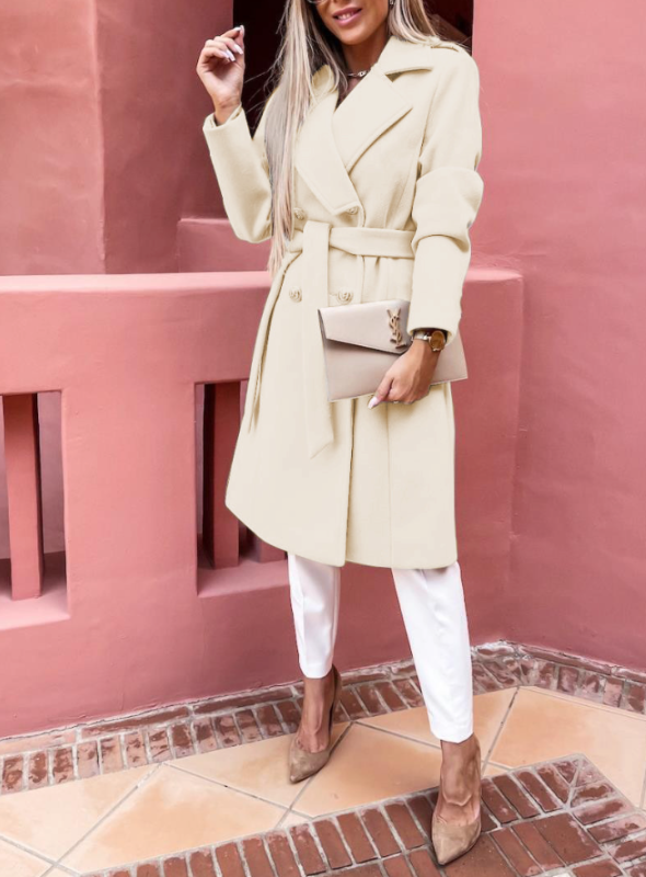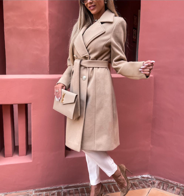 Chique Elegante Dames Mantel Jas Met Ceintuur