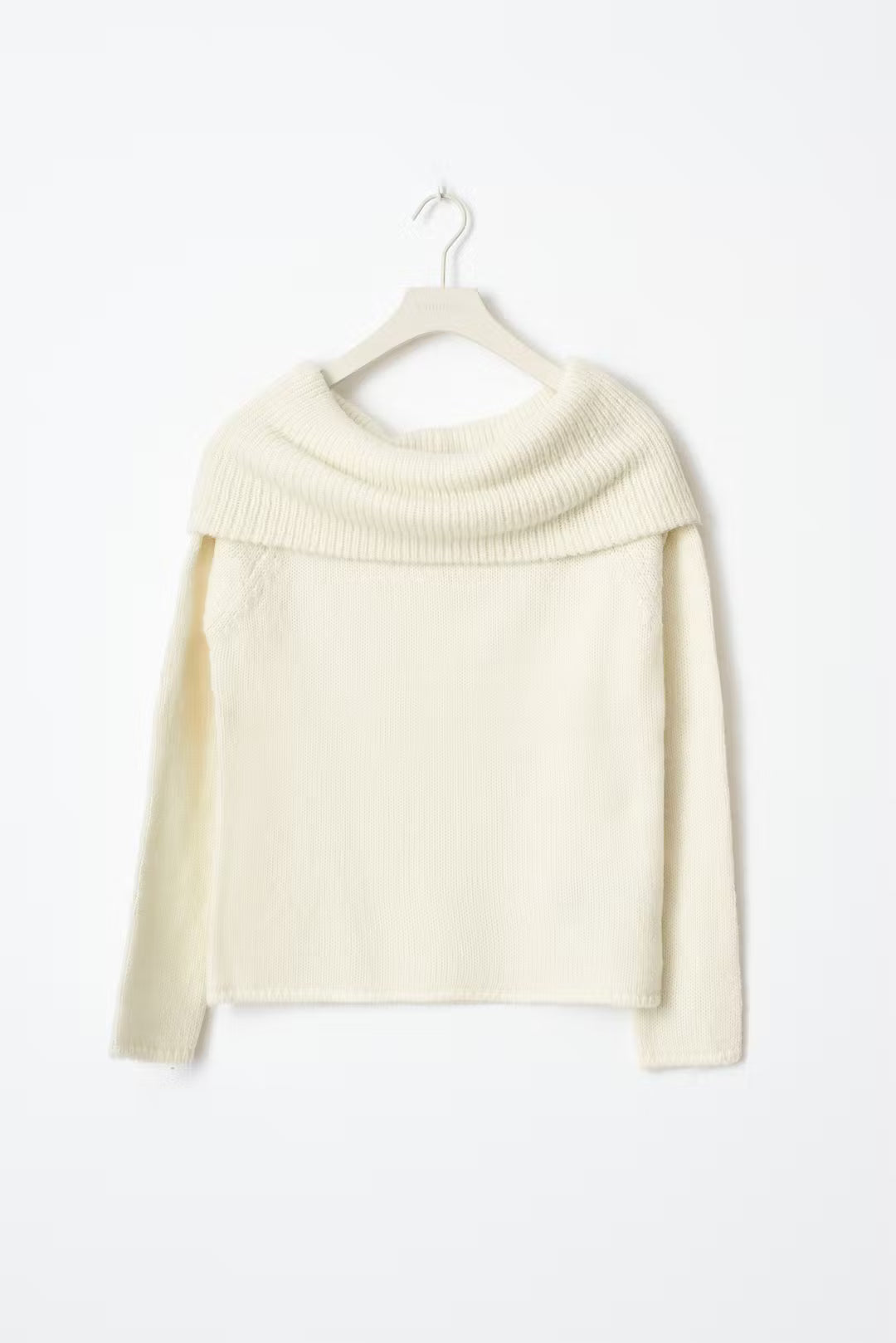 Een comfortabele trui met een wijde, off-shoulder kraag die je zowel speels als elegant kunt dragen. De zachte knit en relaxte pasvorm maken deze trui perfect voor een dagje thuis of een ontspannen avondje uit.