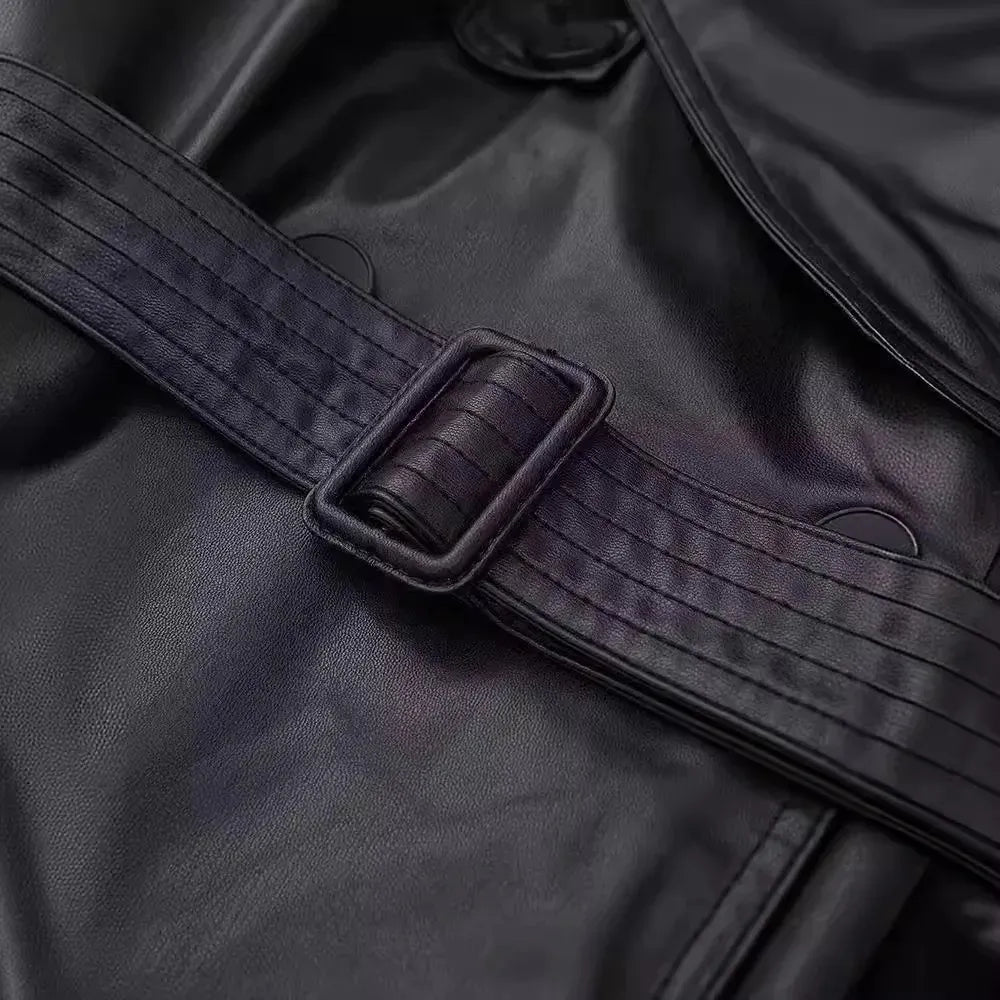 Stijlvolle Dames Trenchcoat van PU Leer met Ceintuur