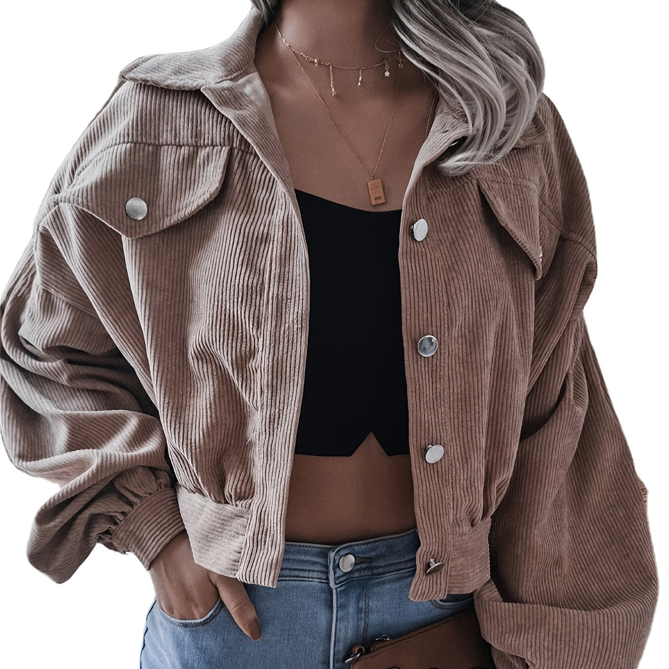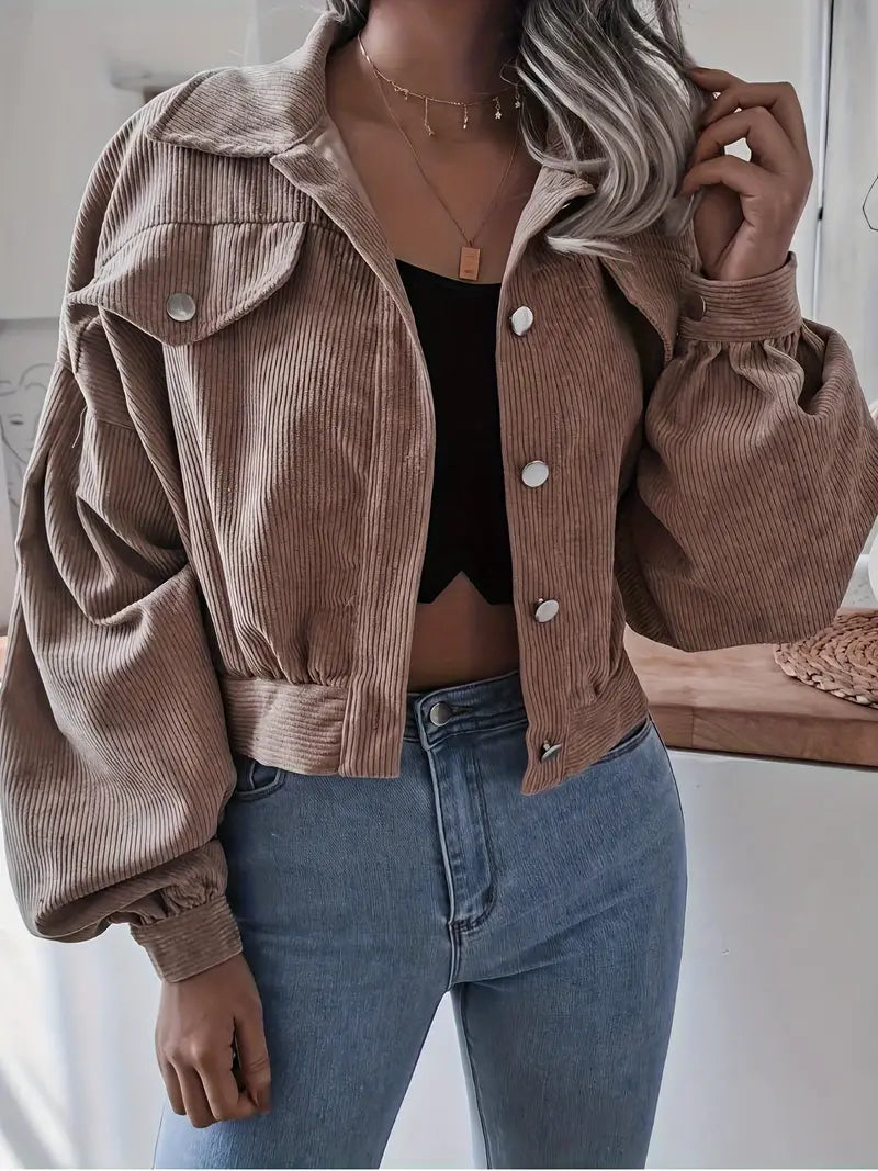 Trendy Dames Ribstof Jas met Korte Pasvorm en Knopen