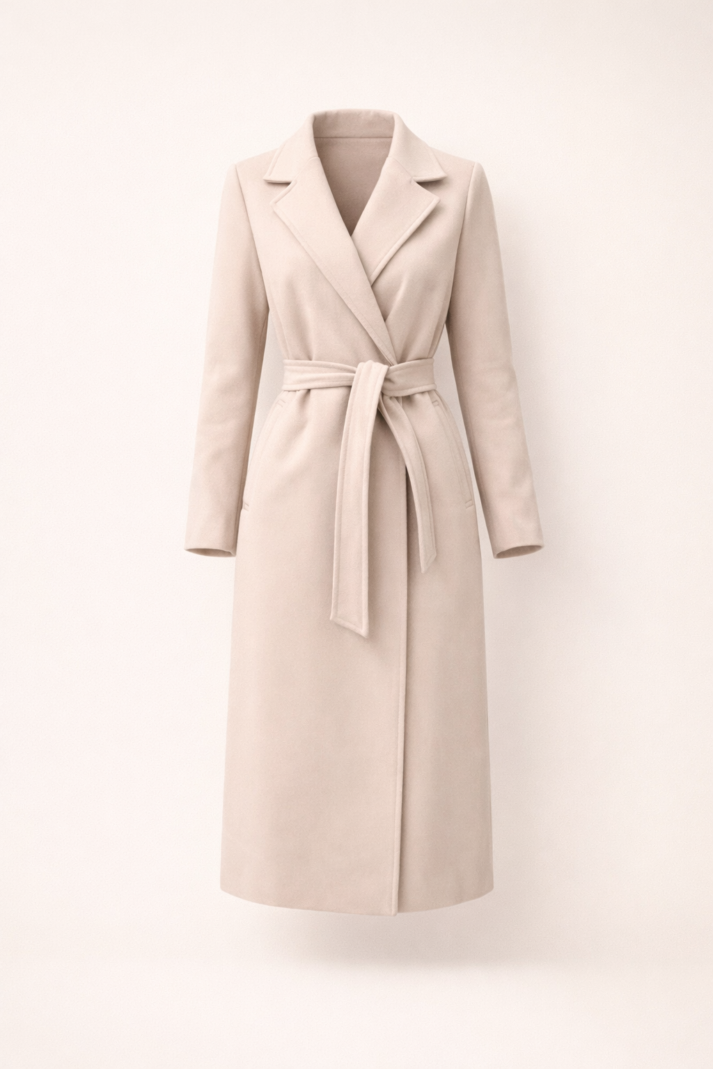 • Design: Lange mantel met elegante reverskraag en strakke afwerking